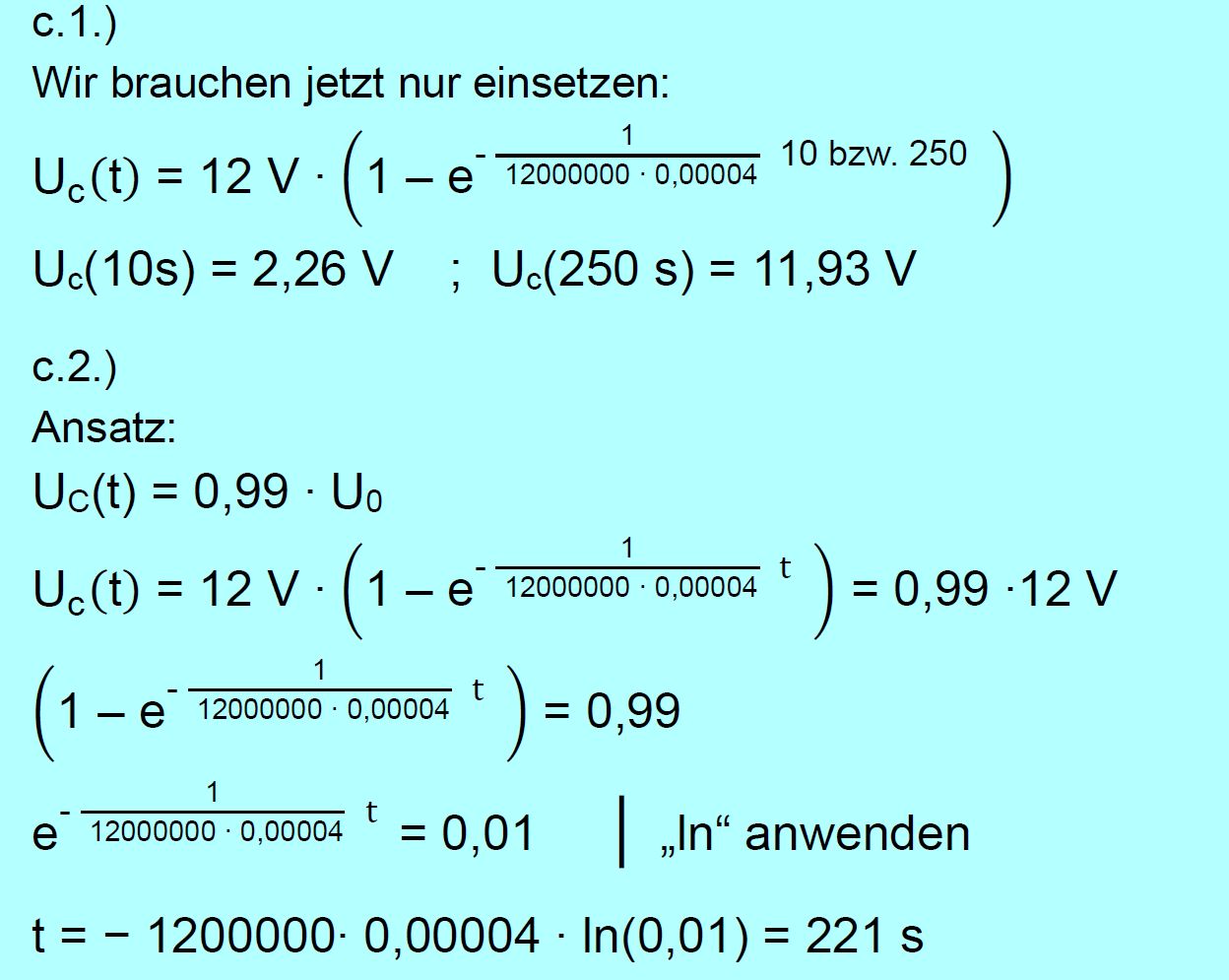 a.)3.). c.) Für die Spannung am Kondensator gilt für