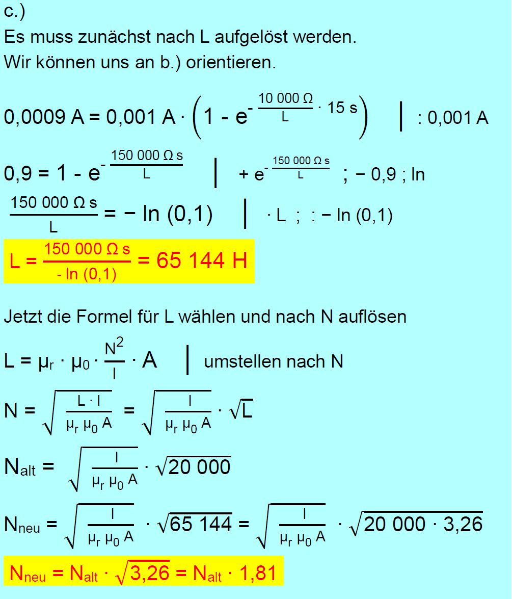 Vorgaben ( L = 20 000 H, U0 = 10 V, RE = 10 kΩ ). e.) Nach welcher Zeit (seit dem