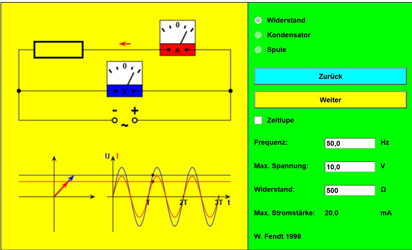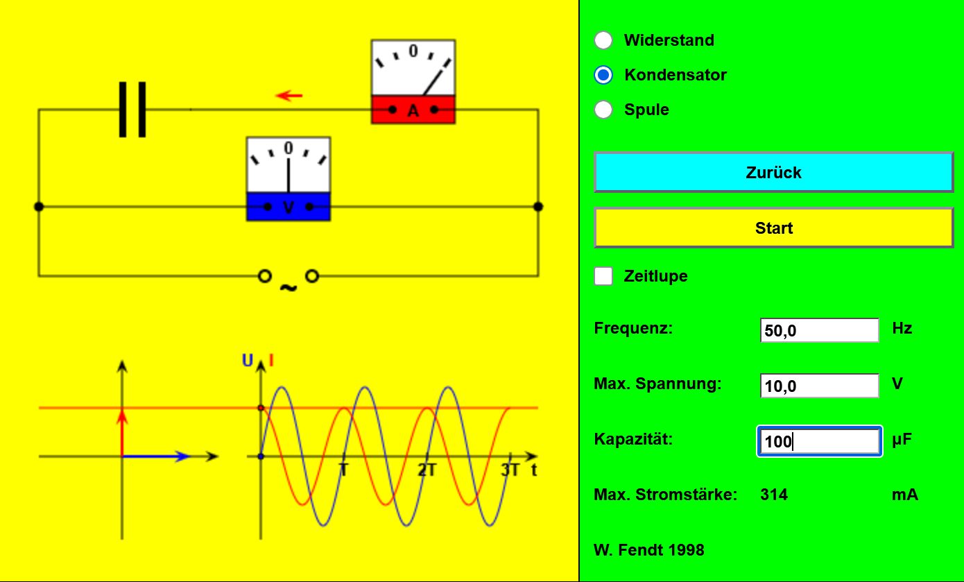 Animation von W. Fendt. (Hinweis: Auf Kondensator umstellen s. Bild) Quelle: Walter Fendt Anschauliche Erklärung für die