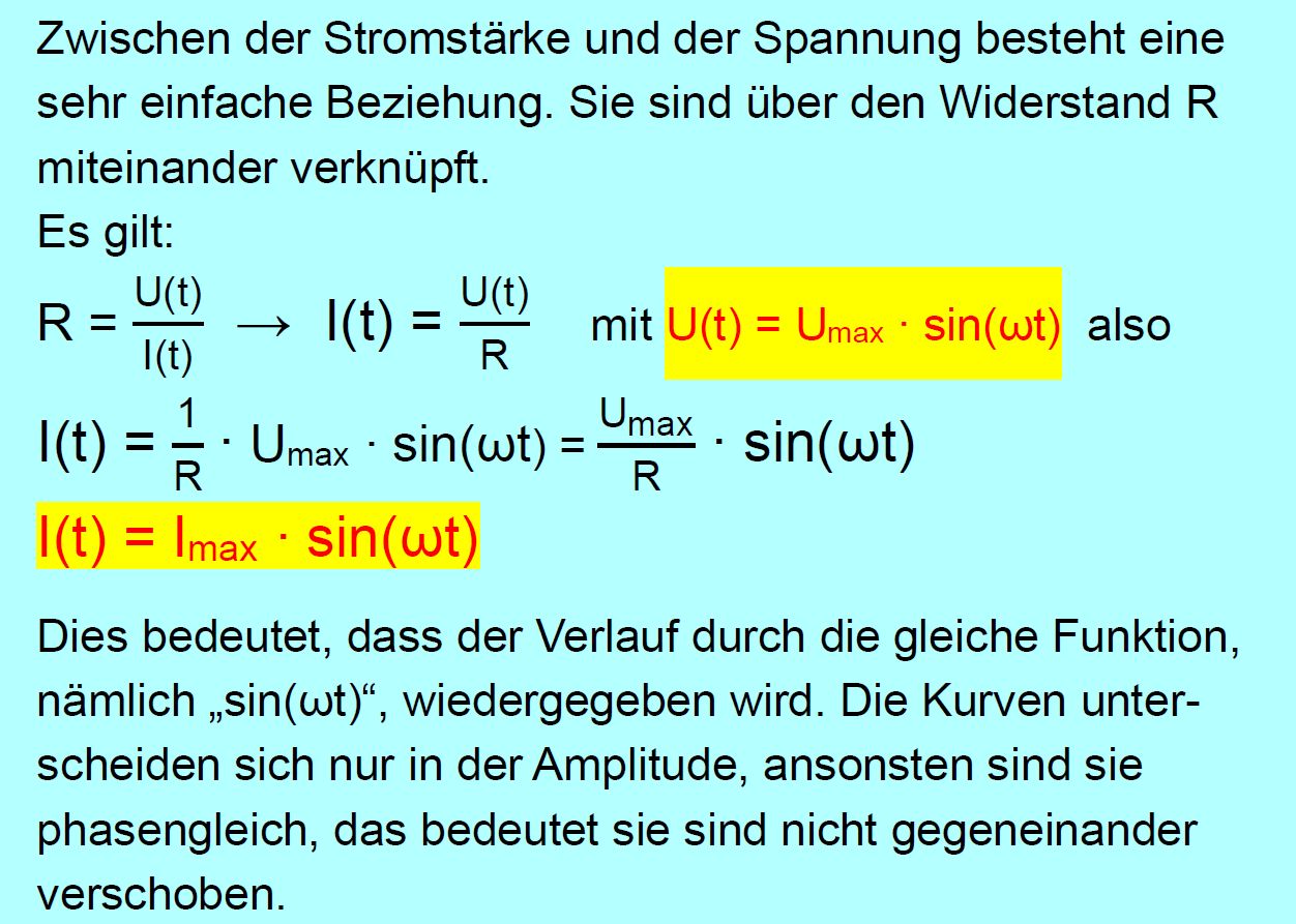 bedeutet, dass der Stromstärkeverlauf nicht mit dem Verlauf der Spannung übereinstimmt,