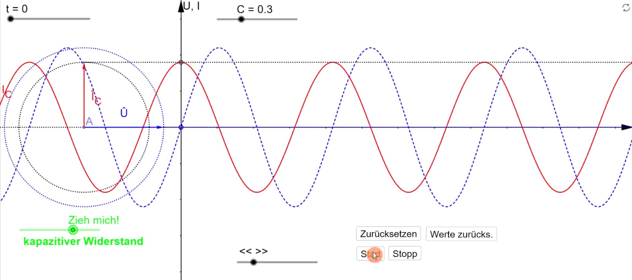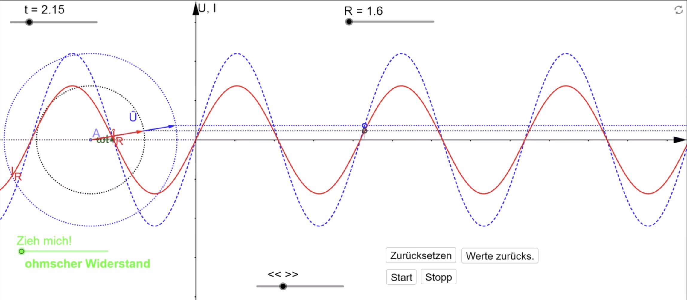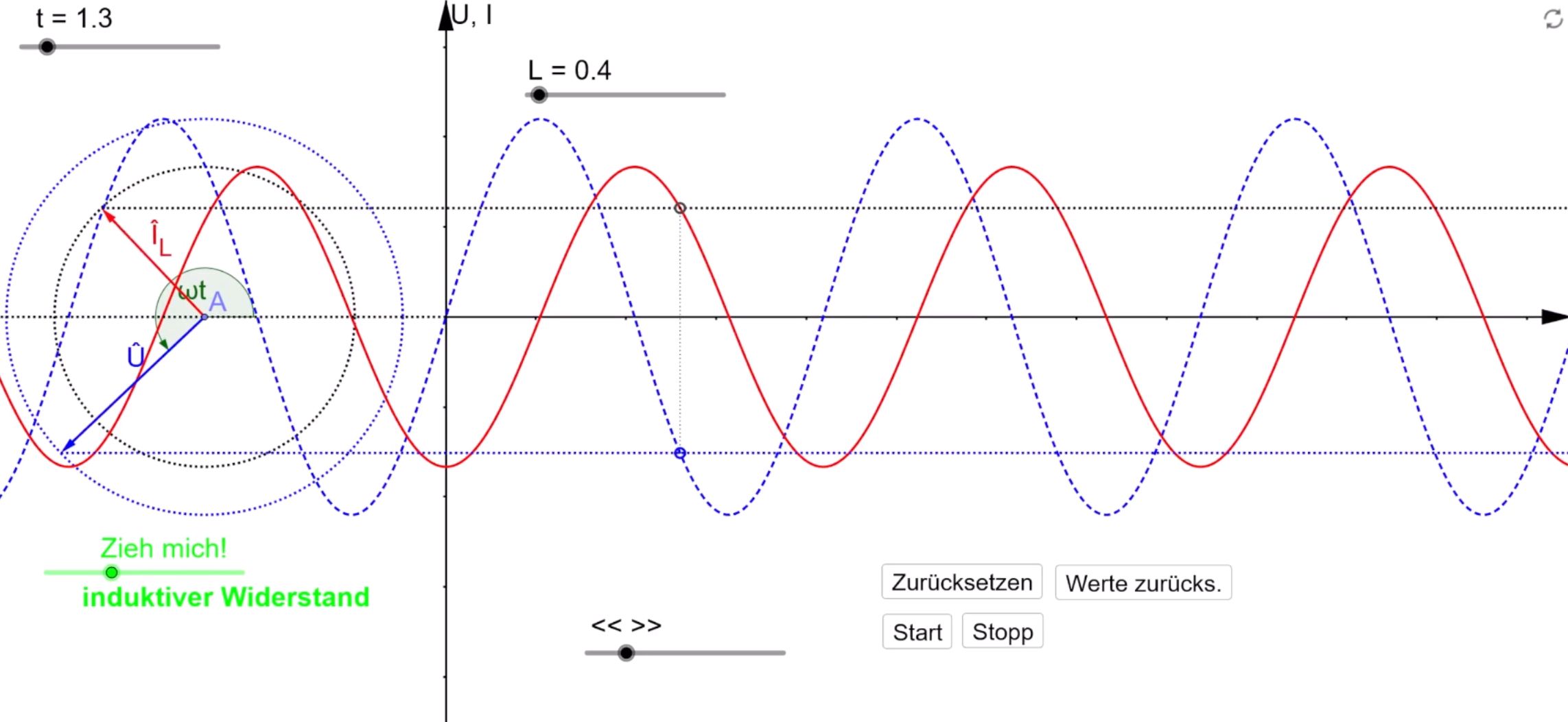 GeoGebra-Animation zeigt. Quelle: GeoGebra Bei der Spule haben wir also eine Phasenverschiebung von