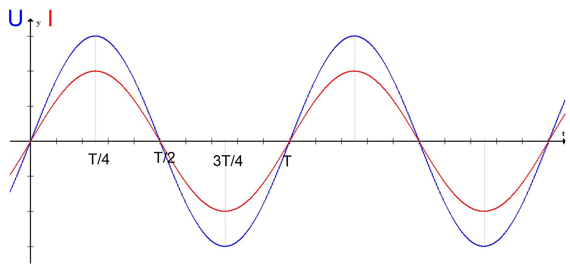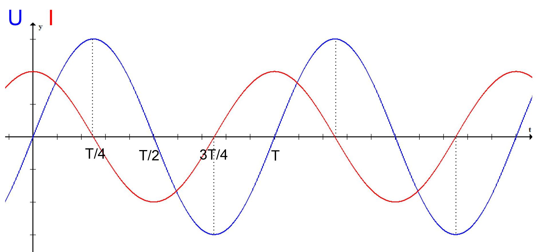 Induktionsspannung und somit Generatorspannung maximal ( Uind(t) = − L ∙ I‘(t) ) T/2: Stromstärke ändert sich nicht →