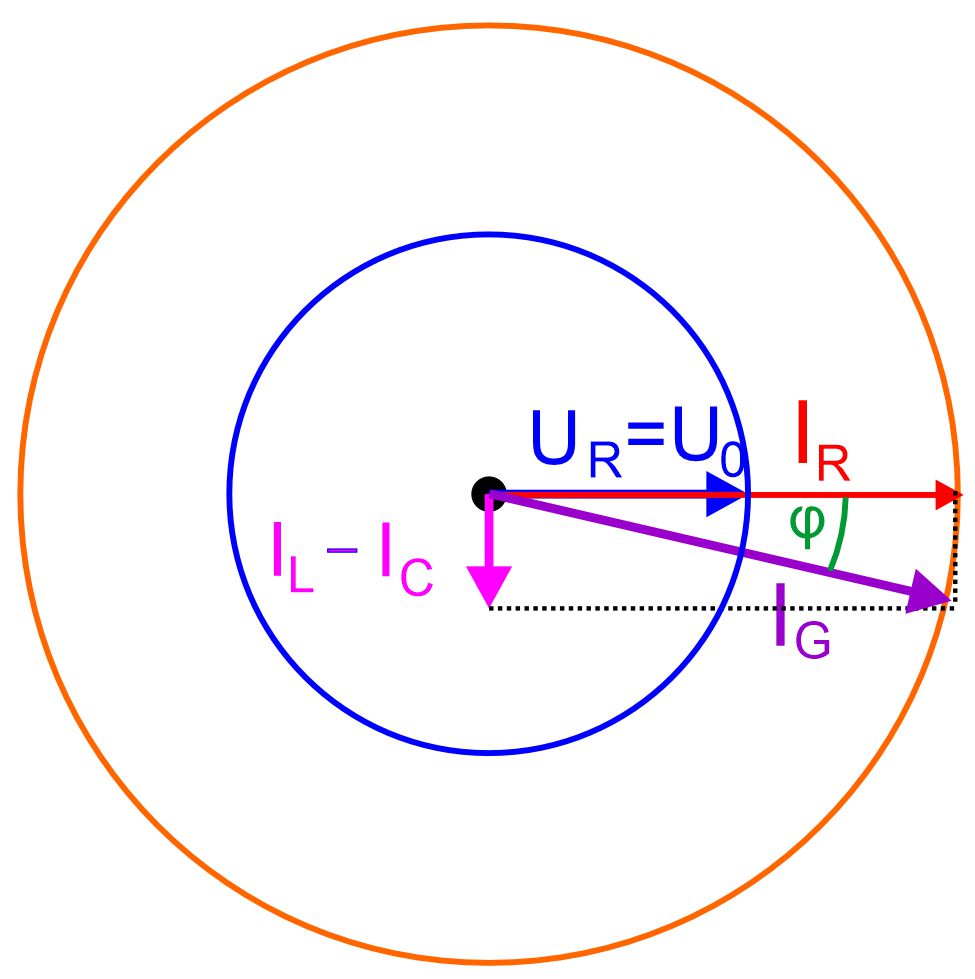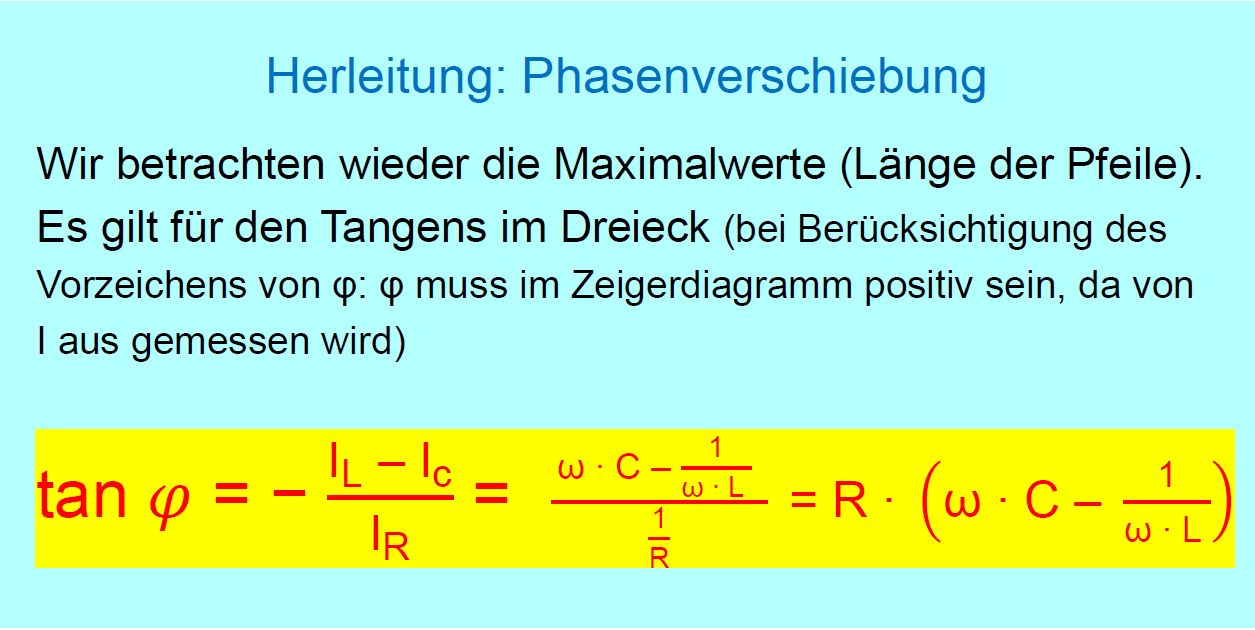 der Stromstärke verschoben, da sich das Zeigerdiagramm gegen