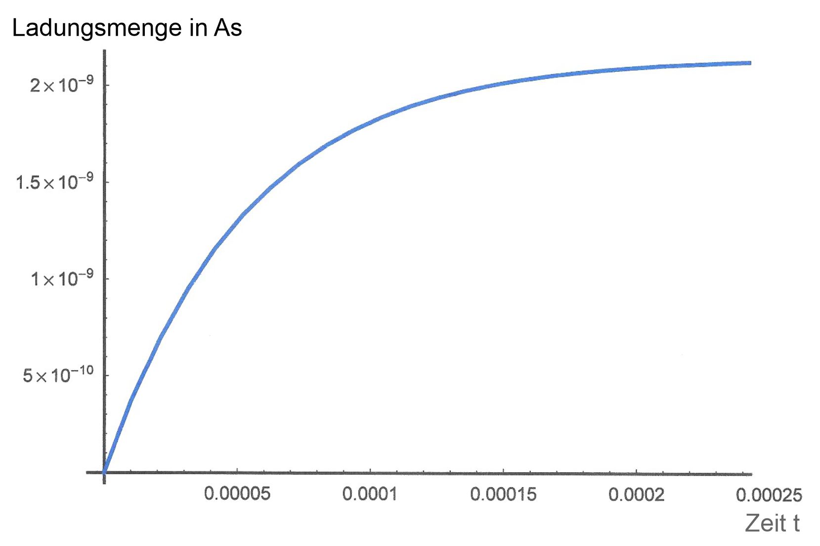 eine Sättigungskurve. Zunächst fließen viele Ladungen auf, dann