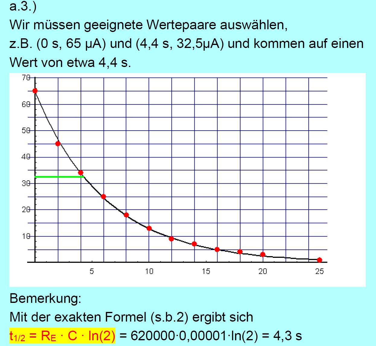 Halbwertszeit her. Kontrollieren Sie hiermit Ihr Ergebnis aus