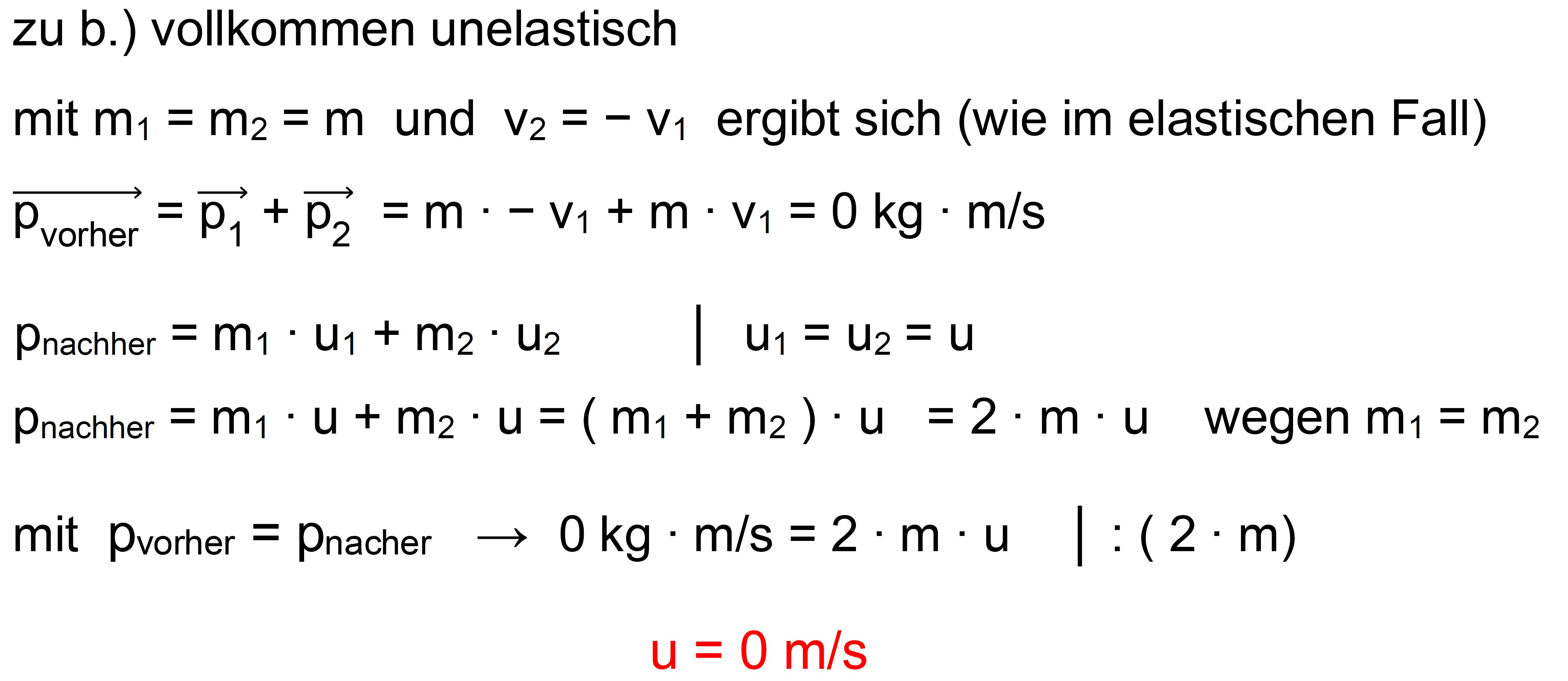 Dies bedeutet, dass sich die Massen nach dem Stoß nicht mehr bewegen (s. Animation im Kapitel Impuls).